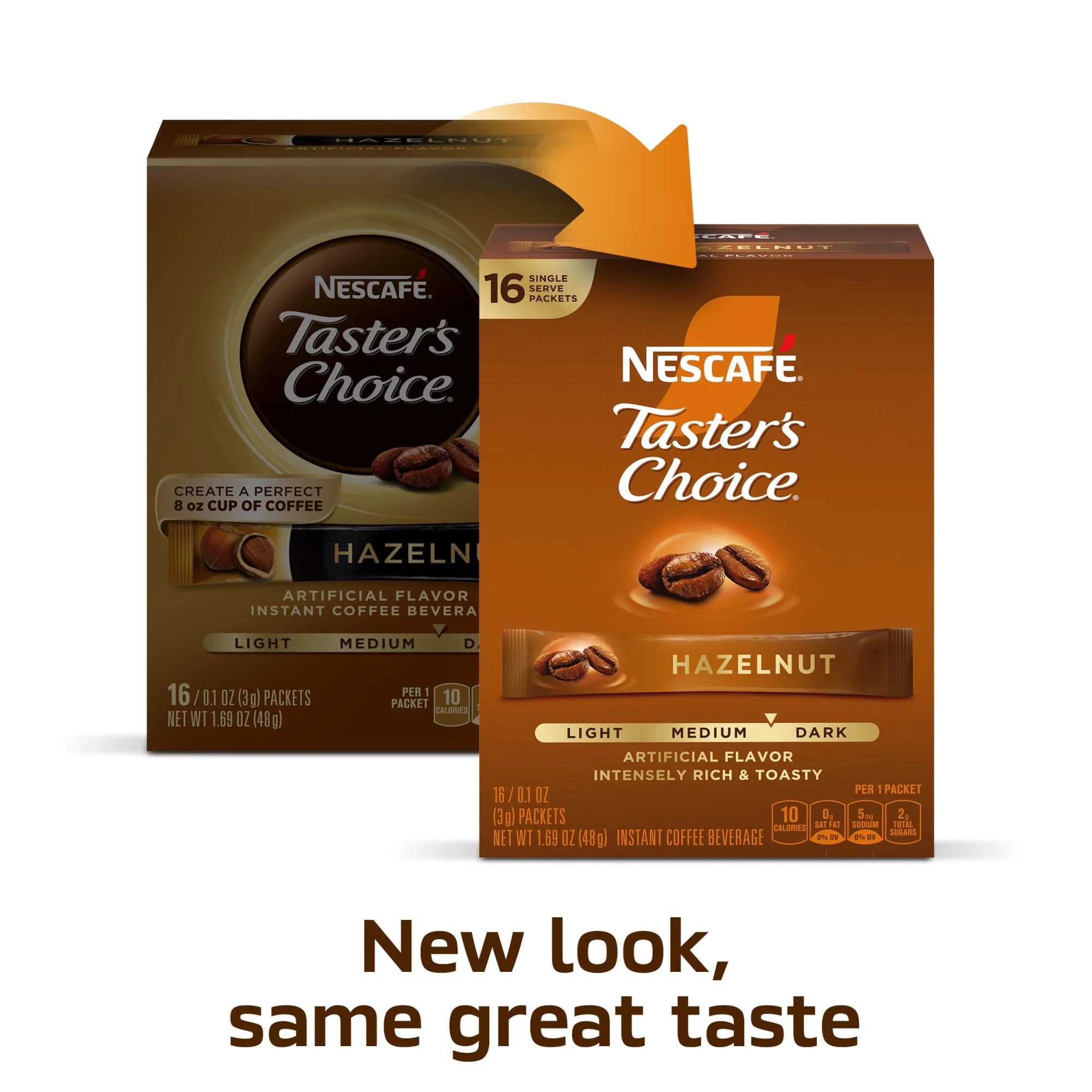 NESCAFÉ Taster's Choice, Hazelnut Flavored Coffee, Instant Coffee Packets, 1 Box, 16 Packs