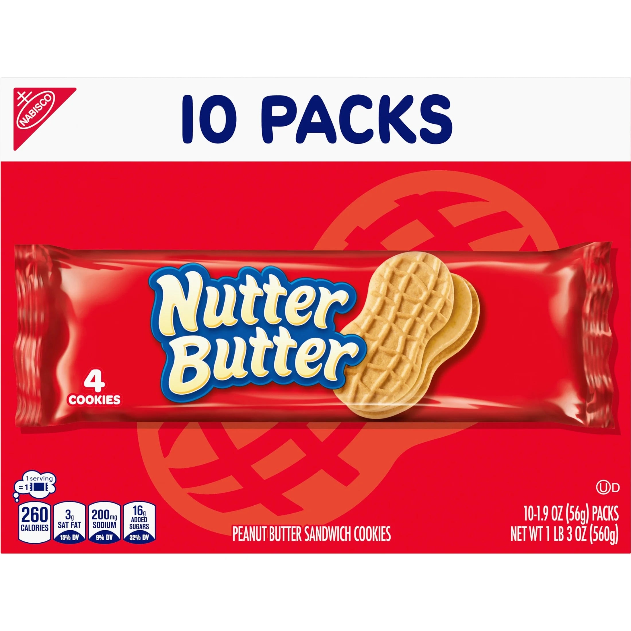 - One box with 10 snack packs (4 cookies per pack) of NUTTER BUTTER Peanut Butter Sandwich Cookies