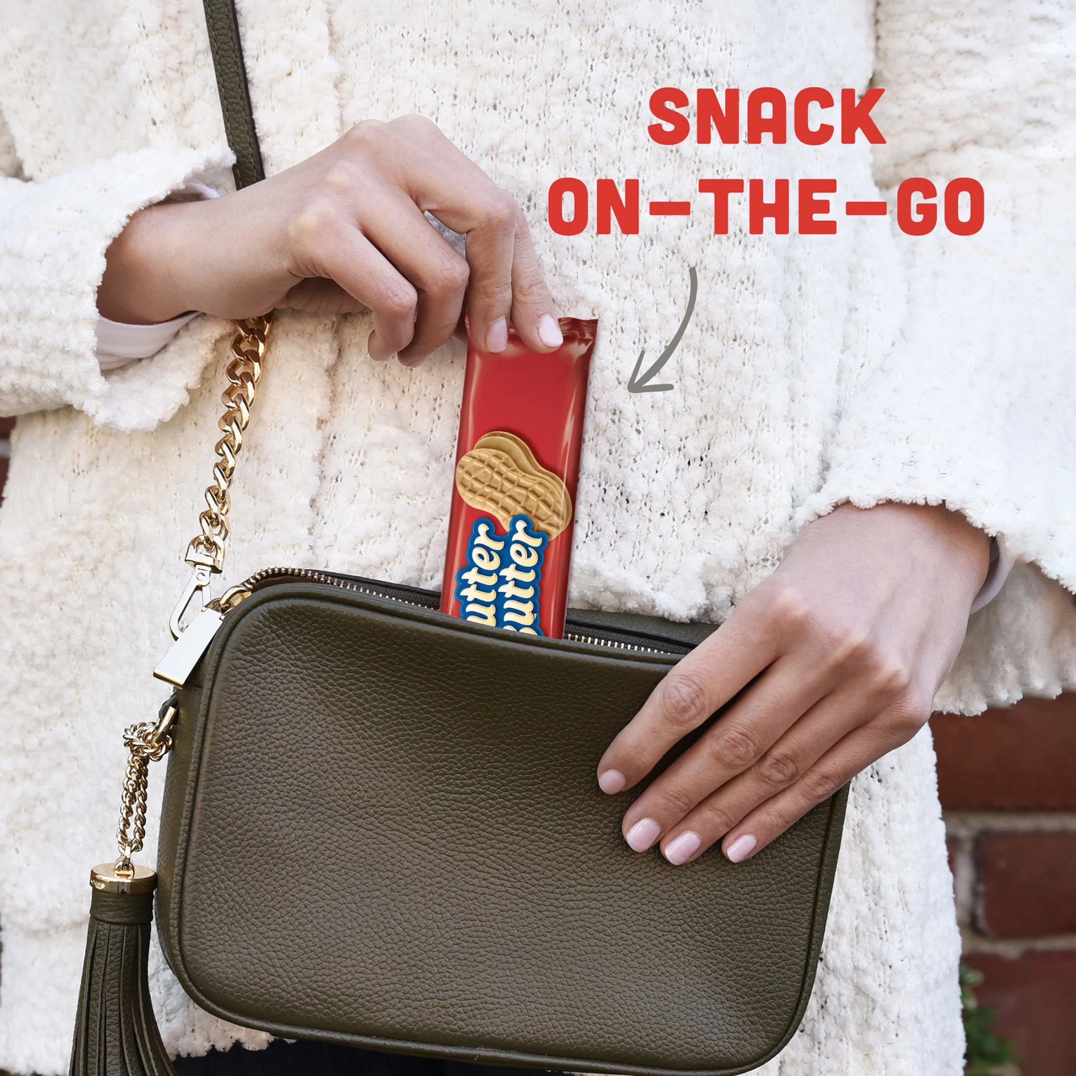 NUTTER BUTTER Peanut Butter Sandwich Cookies satisfy the peanut butter lovers in your family with a snack that's ready to enjoy. Made with real peanut butter, these cookies have a crunchy texture and a smooth, creamy filling between two crispy wafers for a sweet and savory snack. These sandwich cookies come in a peanut shape, making snacking fun for all ages. Individual peanut butter cookie snack packs each contain four cookies, making them perfect lunch snacks, school snacks, office snacks and on the go snacks. Sealed cookie packs keep these bulk cookies fresh until you're ready to enjoy.