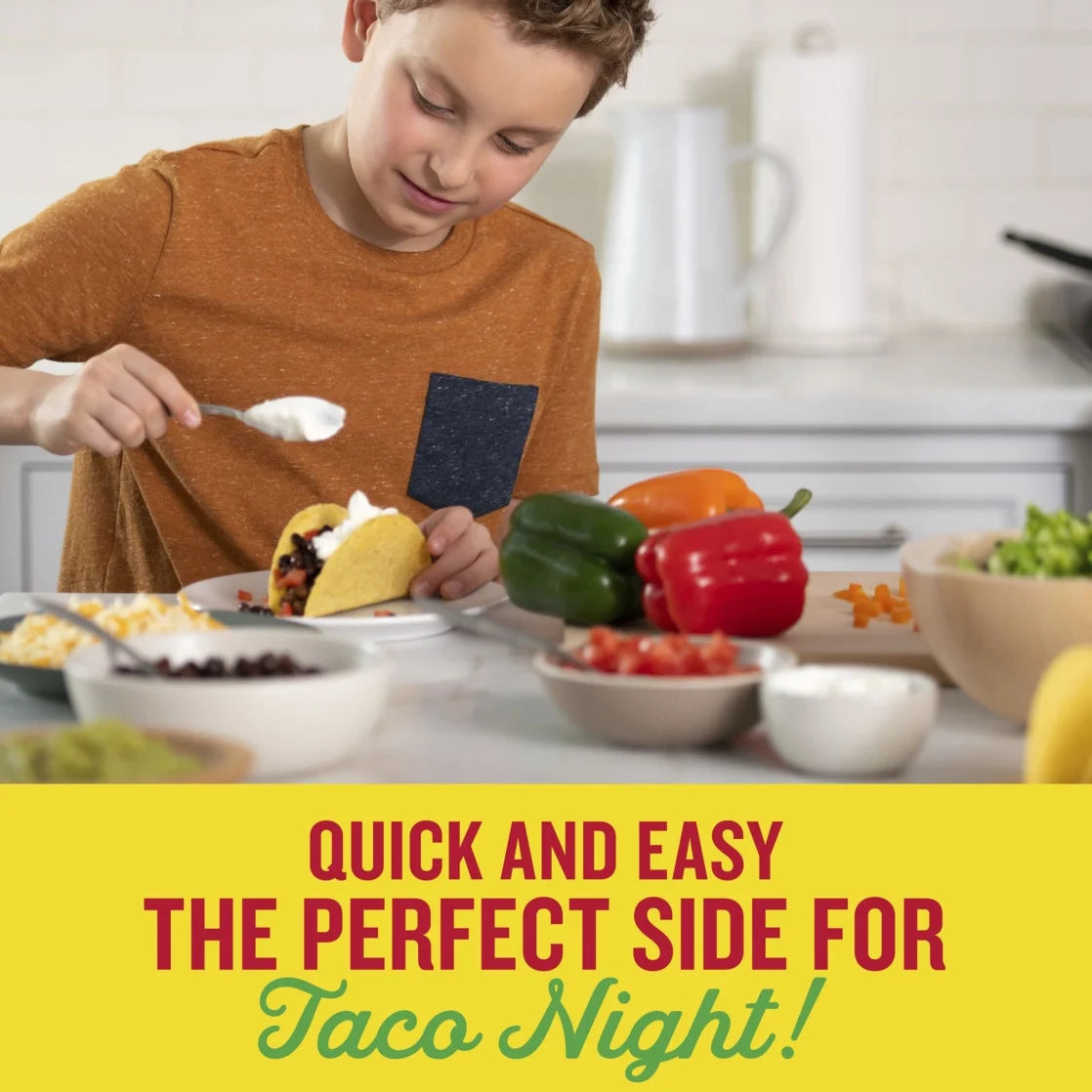 Reach for Old El Paso Microwavable Mexican Style Rice for a sensational side dish that's ready in about 60 seconds. Each serving combines long grain white rice with kidney beans, bell peppers, and smoked paprika for mouthwatering flavor with mild heat in every bite. Get the taste your family loves plus the time savings you need, all in one microwaveable pouch. Pair our Mexican Style Rice with Old El Paso Tex-Mex Style Pinto Beans or Santa Fe Style Black Beans, pork tacos, or beef burritos. Toss this microwavable rice into a tempting taco bowl. Add some to enticing Tex-Mex casseroles. Stir some into your favorite Tex-Mex chicken and rice skillet. Old El Paso has been stirring up smiles at gatherings for generations. Explore our family of delicious and convenient products including dinner kits, taco shells, tortillas, sauces, refried beans, and more. Contains shelf-stable, dried Old El Paso Rice, Mexican Style Rice, Microwavable Pouch, 8.8 oz.