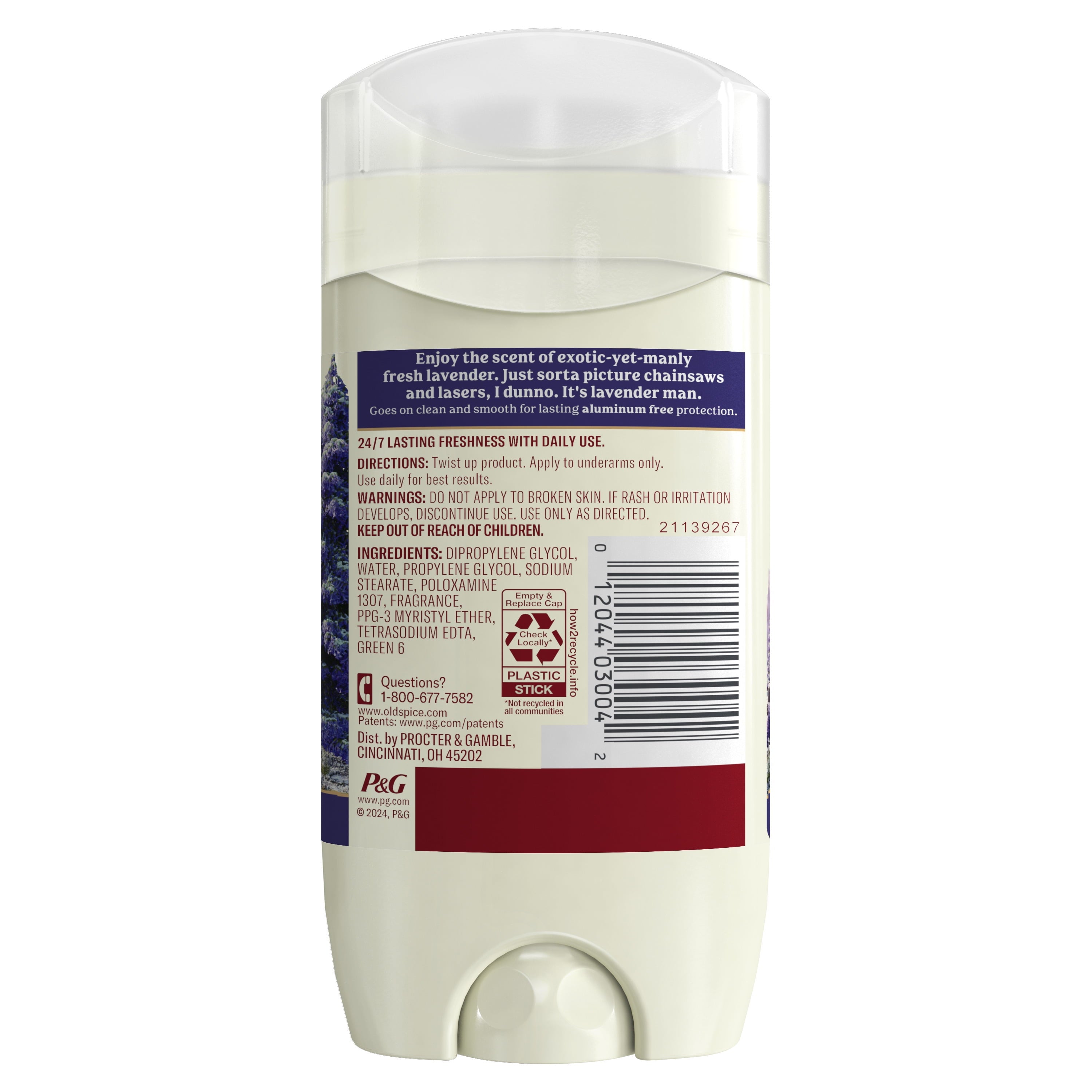 - Old Spice men's deodorant aluminum-free wilderness with lavender, 3oz has 24/7 ODOR PROTECTION* with daily application/use