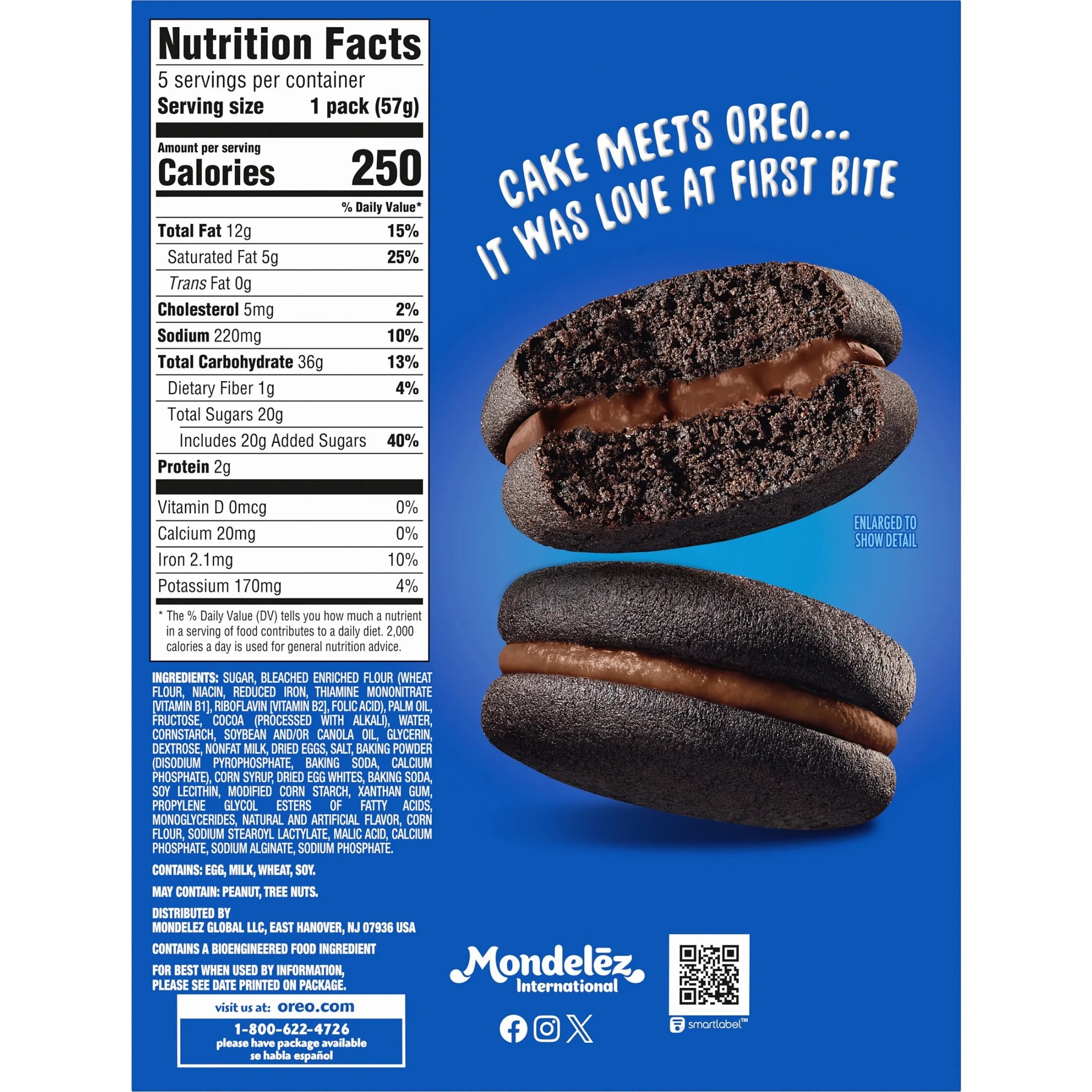 OREO Cakesters Double Chocolate Soft Snack Cakes are a delicious, soft-baked twist on the OREO Sandwich Cookie taste. These OREO snack cakes sandwich chocolate creme filling between two soft, chocolate cakes, making them great snacks for all ages. Each snack pack includes two soft snack cakes that are wonderful adult lunch snacks, birthday treats, or office snacks. In individually wrapped packs that are great for grabbing on the way out the door, these snack cakes are delicious on the go snacks or travel snacks.