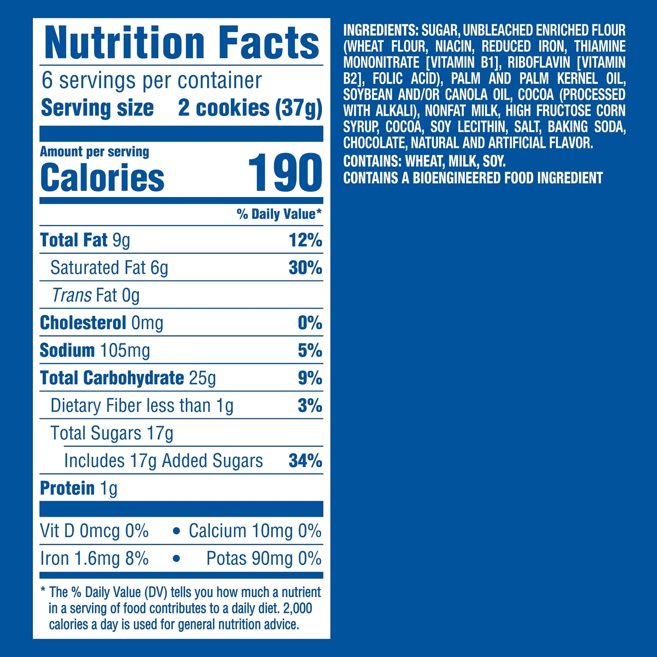 Sugar, Unbleached Enriched Flour (Wheat Flour, Niacin, Reduced Iron, Thiamine Mononitrate [Vitamin B1], Riboflavin [Vitamin B2], Folic Acid), Palm And Palm Kernel Oil, Soybean And/Or Canola Oil, Cocoa (Processed With Alkali), Nonfat Milk, High Fructose Corn Syrup, Cocoa, Soy Lecithin, Salt, Baking Soda, Chocolate, Natural And Artificial Flavor. Contains: Milk, Wheat, Soy./div>