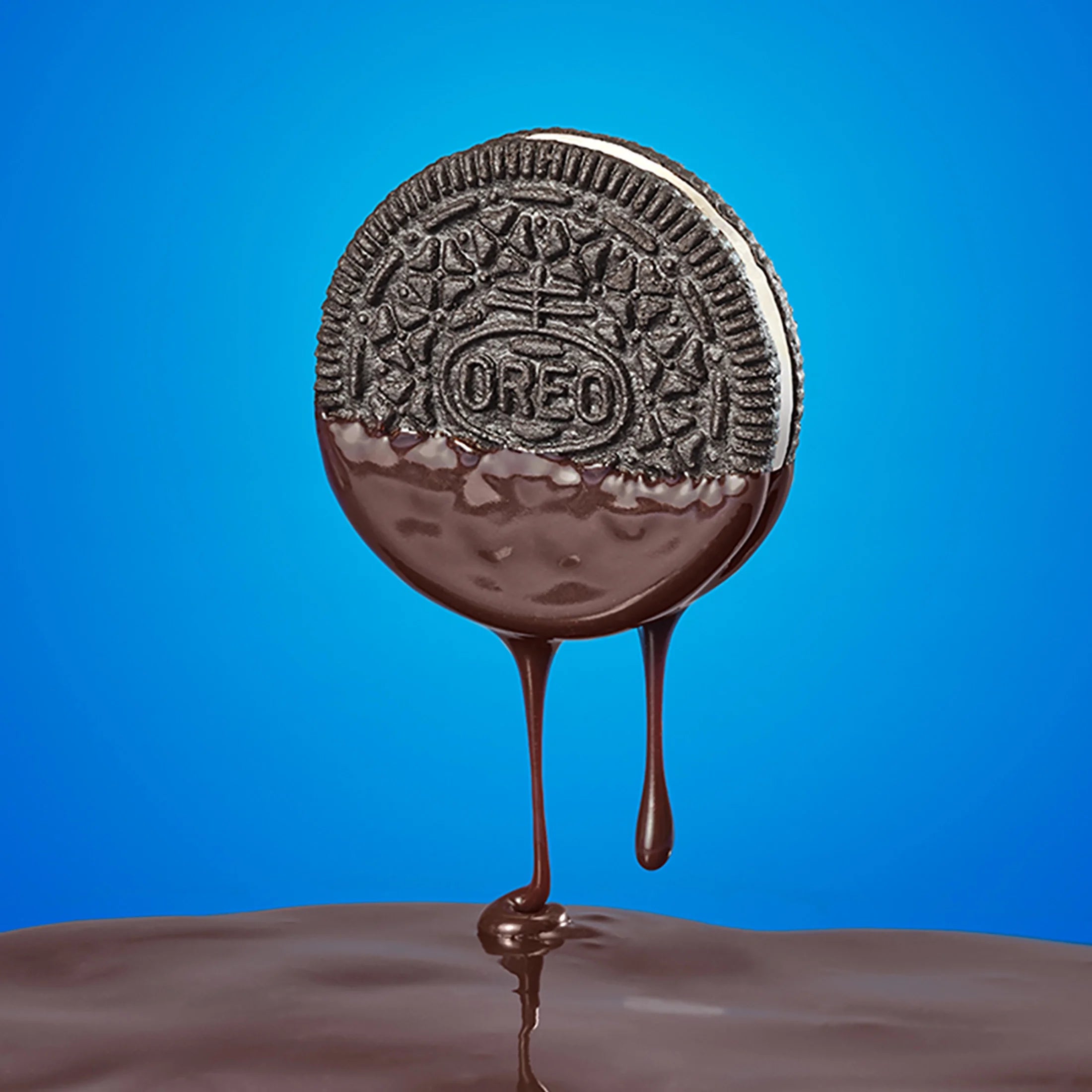 - Chocolate wafer cookies with original OREO creme, dipped in rich chocolate fudge