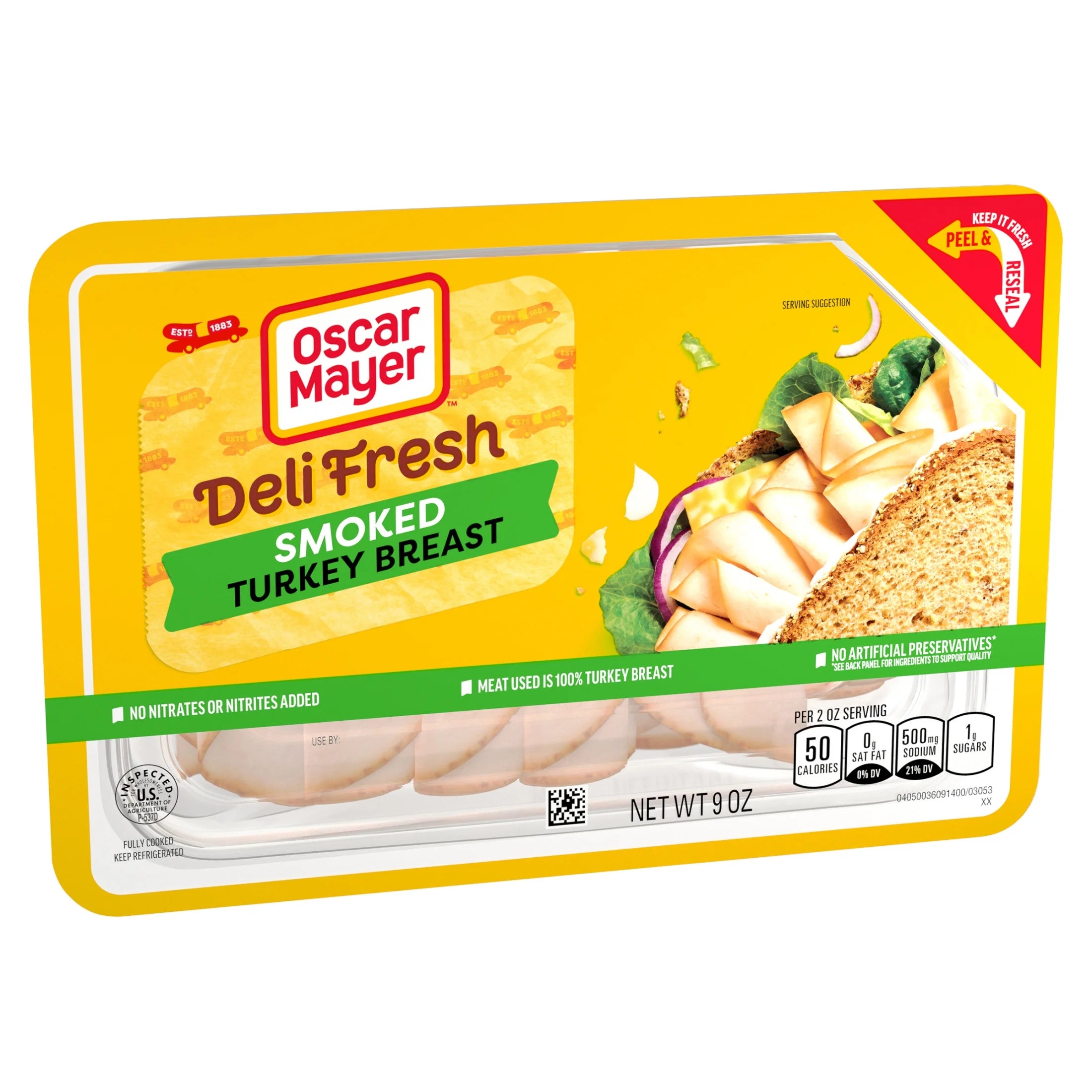- One 9 oz plastic tray of Oscar Mayer Deli Fresh Smoked Turkey Breast Sliced Lunch Meat