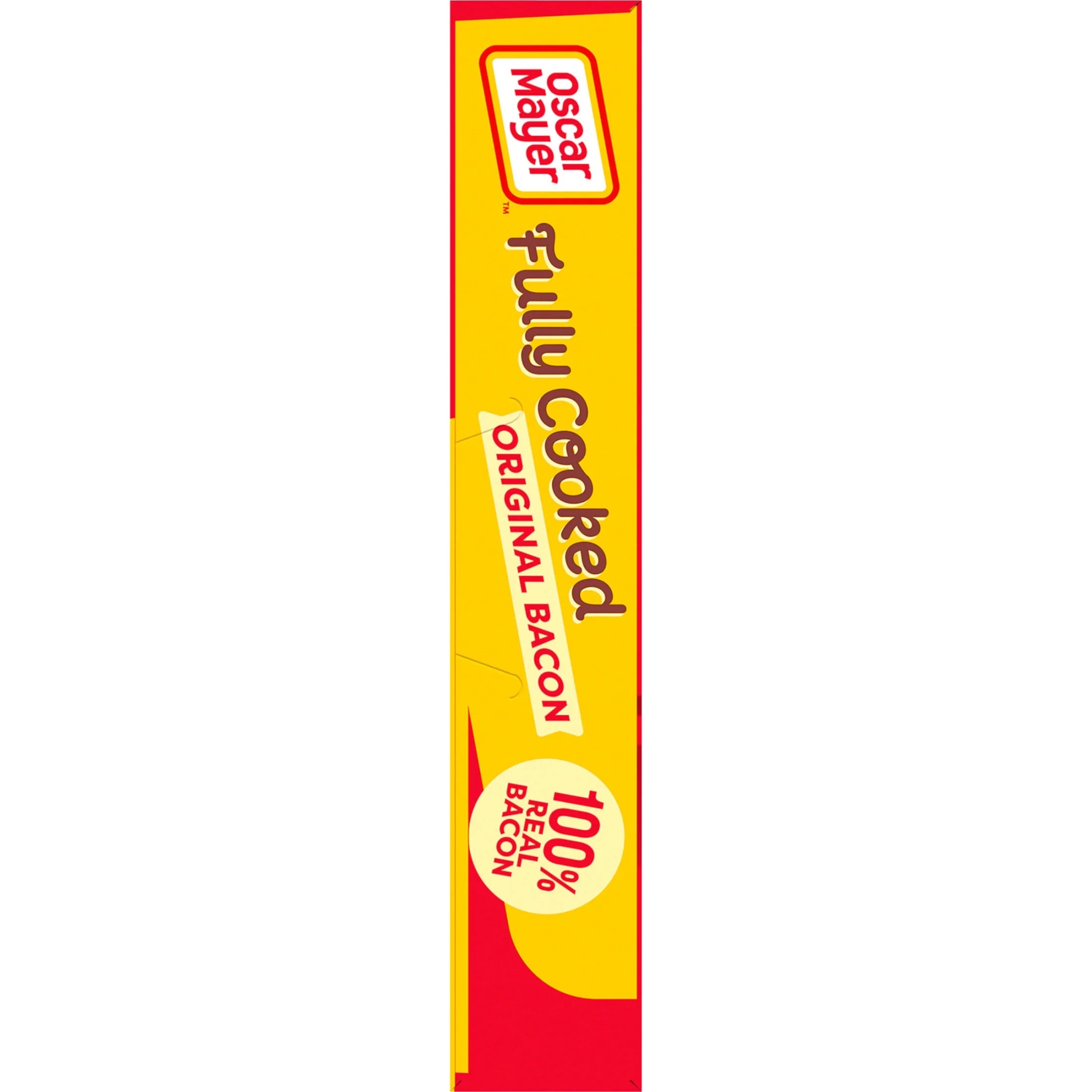 Everything is better with bacon. Oscar Mayer Fully Cooked Bacon Slices make it easy to add the delicious flavor of smoked bacon to any dish. Our precooked bacon is slow smoked with natural hardwoods to ensure our signature Oscar Mayer bacon flavor. Enjoy carefully selected cuts of 100% real bacon fully cooked to ensure premium quality. Try our sliced bacon on a breakfast sandwich, serve up bacon and eggs, or cut the slices up to sprinkle on your favorite salad and baked potatoes. You can enjoy our fully cooked bacon hot or cold without the hassle of cooking in a pan. Our 2.52-ounce box of smoked bacon with 9-11 slices comes in a resealable pouch to keep in your refrigerator for freshness.