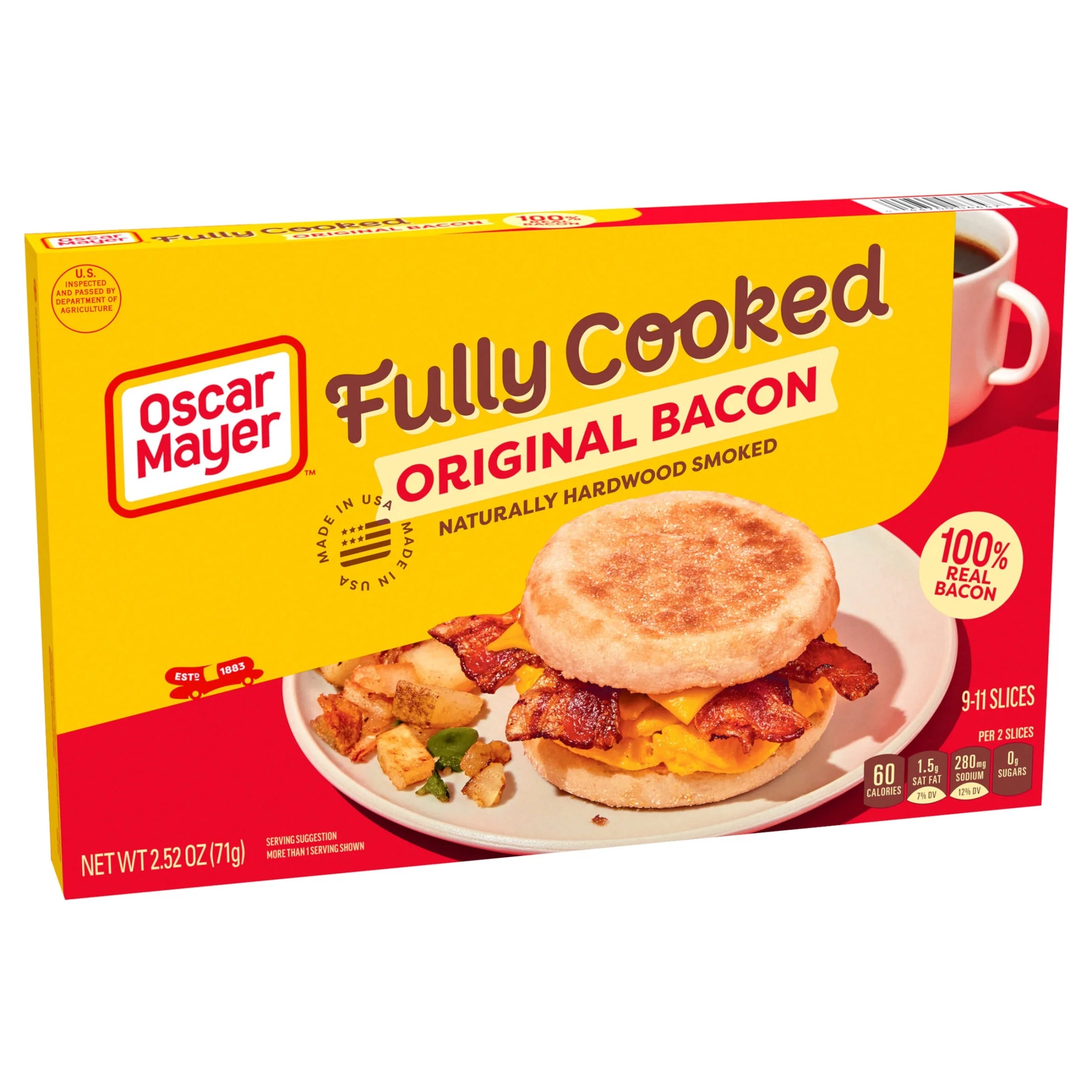 - One 2.52 oz box of Original Oscar Mayer Fully Cooked Bacon, 9-11 Slices