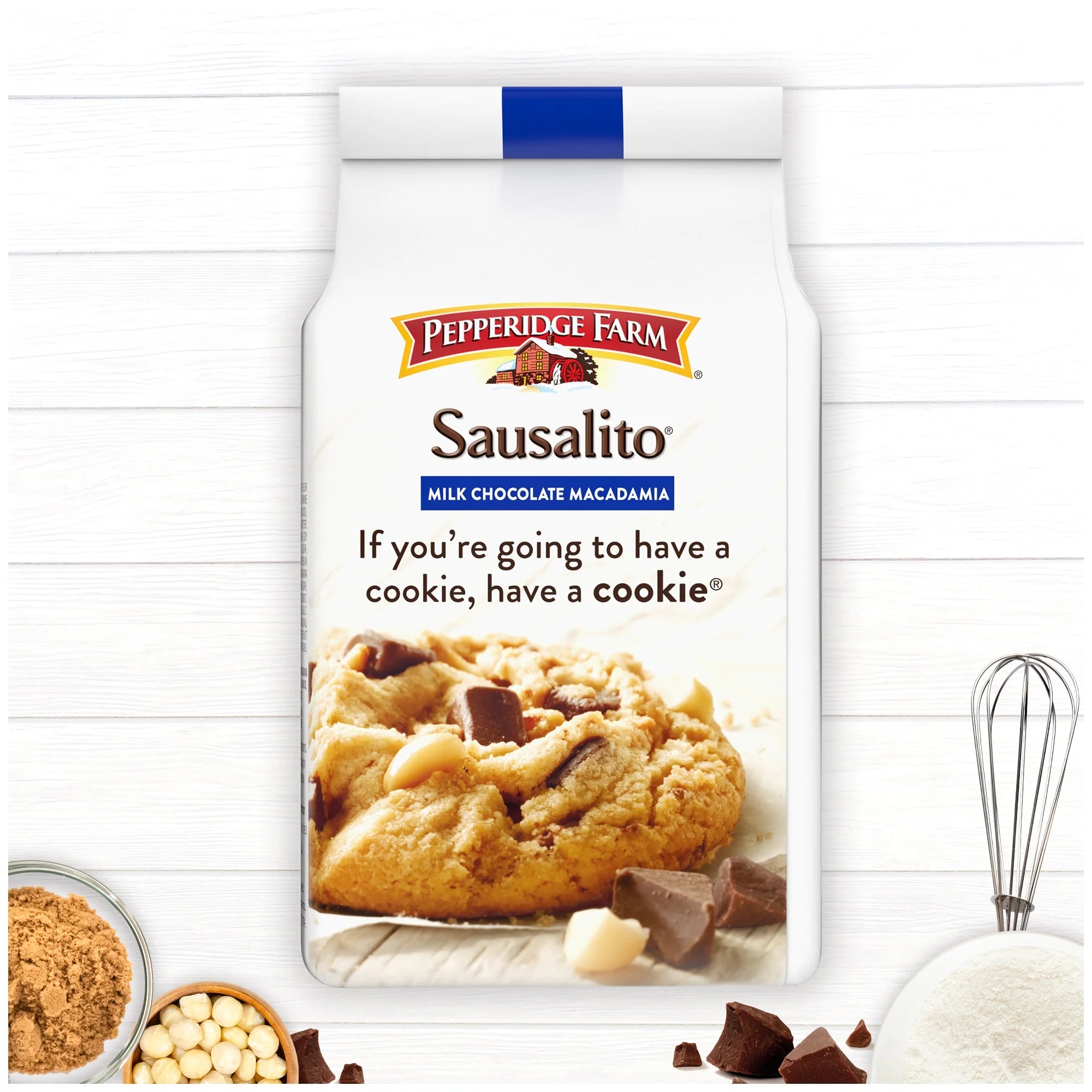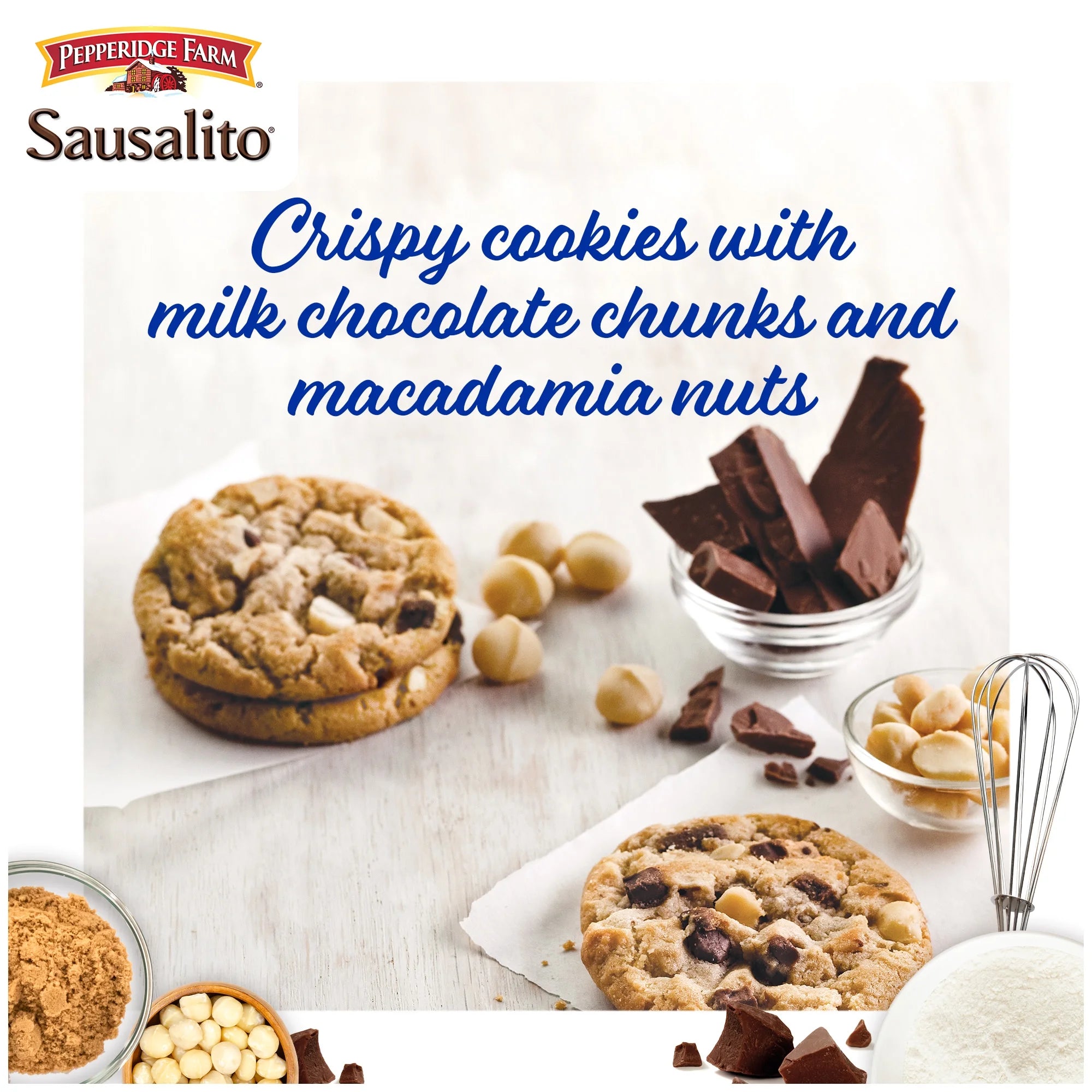 - MILK CHOCOLATE CHUNK COOKIES: Pepperidge Farm Sausalito Macadamia Nut Cookies are baked with an abundance of milk chocolate chunks and macadamia nuts