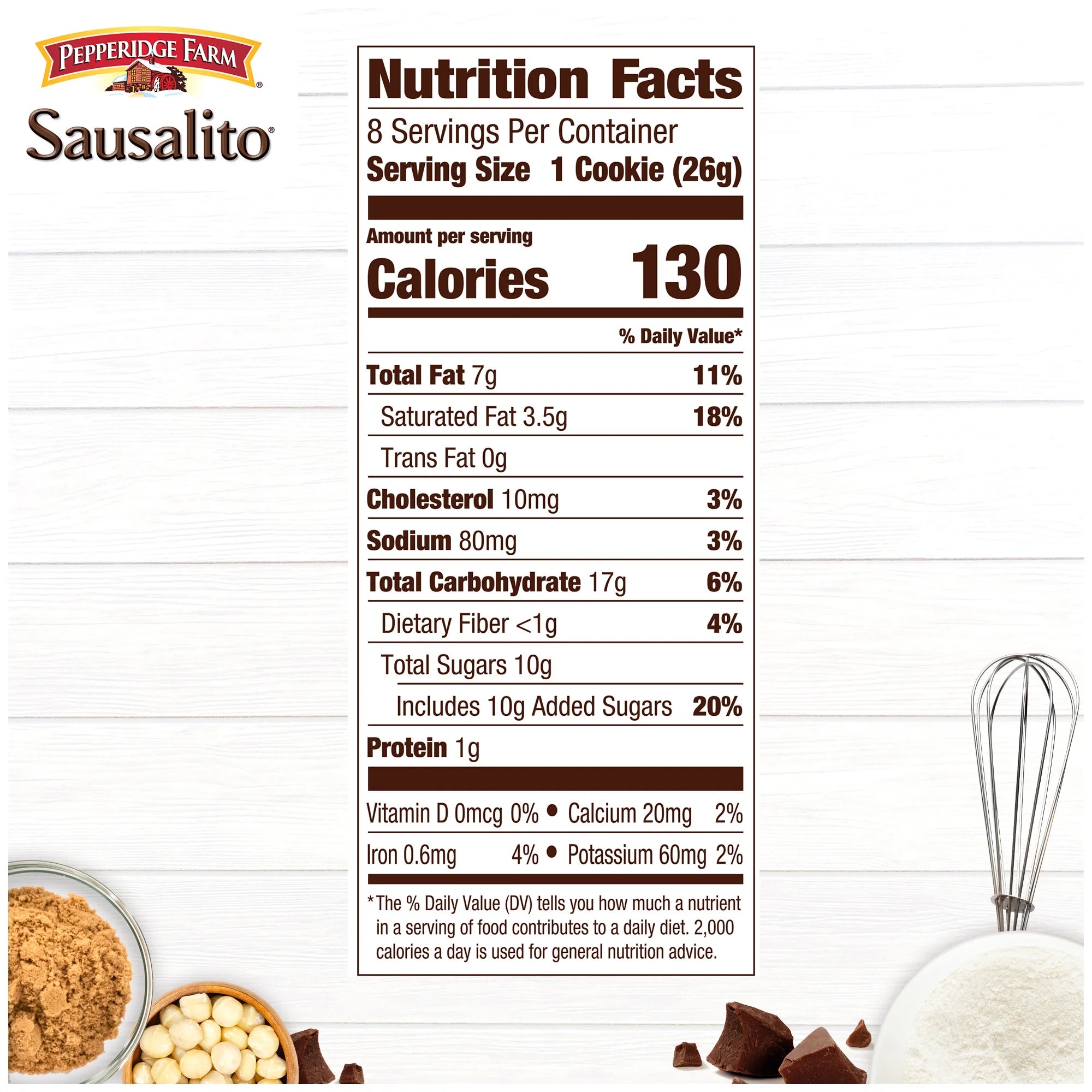 Enjoy the homemade taste of Pepperidge Farm Sausalito Crispy Milk Chocolate Macadamia Nut Cookies. Made with an abundance of rich milk chocolate chunks and crunchy macadamia nuts, these sweet and crispy cookies have a delicious melt-in-your mouth flavor. Every batch is baked with care and quality ingredients, including real eggs and real vanilla extract. Each 7.2-ounce bag contains 8 chocolate chip cookies and is perfect for sharing or stashing in your pantry to satisfy your cravings for sweet snacks. Enjoy Pepperidge Farm Sausalito Cookies on their own, dunk them in a cold glass of milk, or pair them with a hot cup of coffee. Looking for a quick and easy dessert idea for your next party? Our chocolate chunk cookies are great for serving on cookie platters and can be used to make other sweet treats such as ice cream sandwiches and sundaes. In addition to Sausalito Milk Chocolate Macadamia Nut Cookies, our line of chocolate chunk cookies also includes Tahoe White Chocolate Macadamia Nut Cookies, Chesapeake Dark Chocolate Pecan Cookies, and more. Pepperidge Farm cookies are crafted with care and quality ingredients by creative bakers who believe baking is more than a job - it’s a passion. Shelf-stable product.