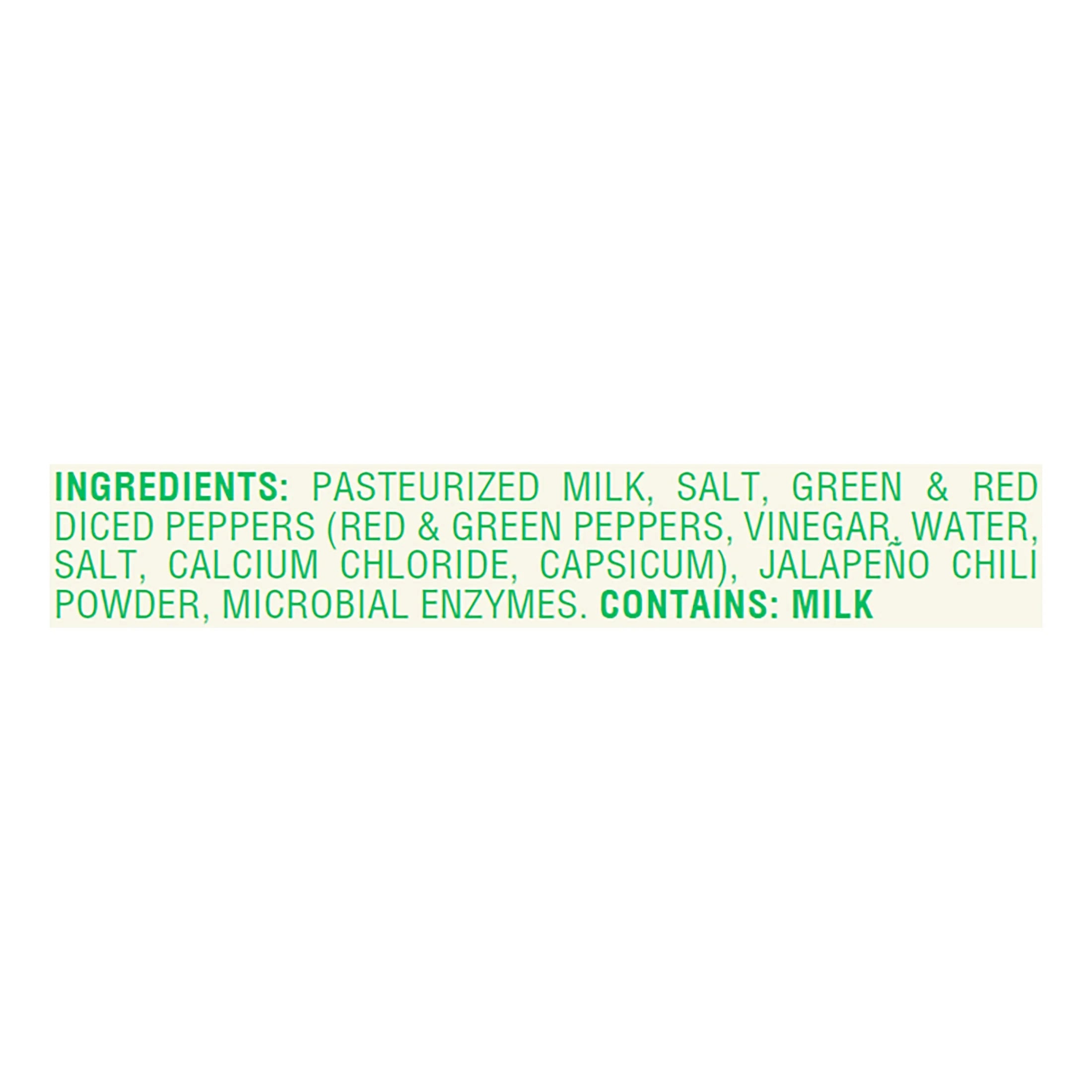 Pasteurized milk, salt, green and red peppers(red and green Peppers, vinegar, water, salt, calcium chloride, capsicum), microbial enzymes./div>