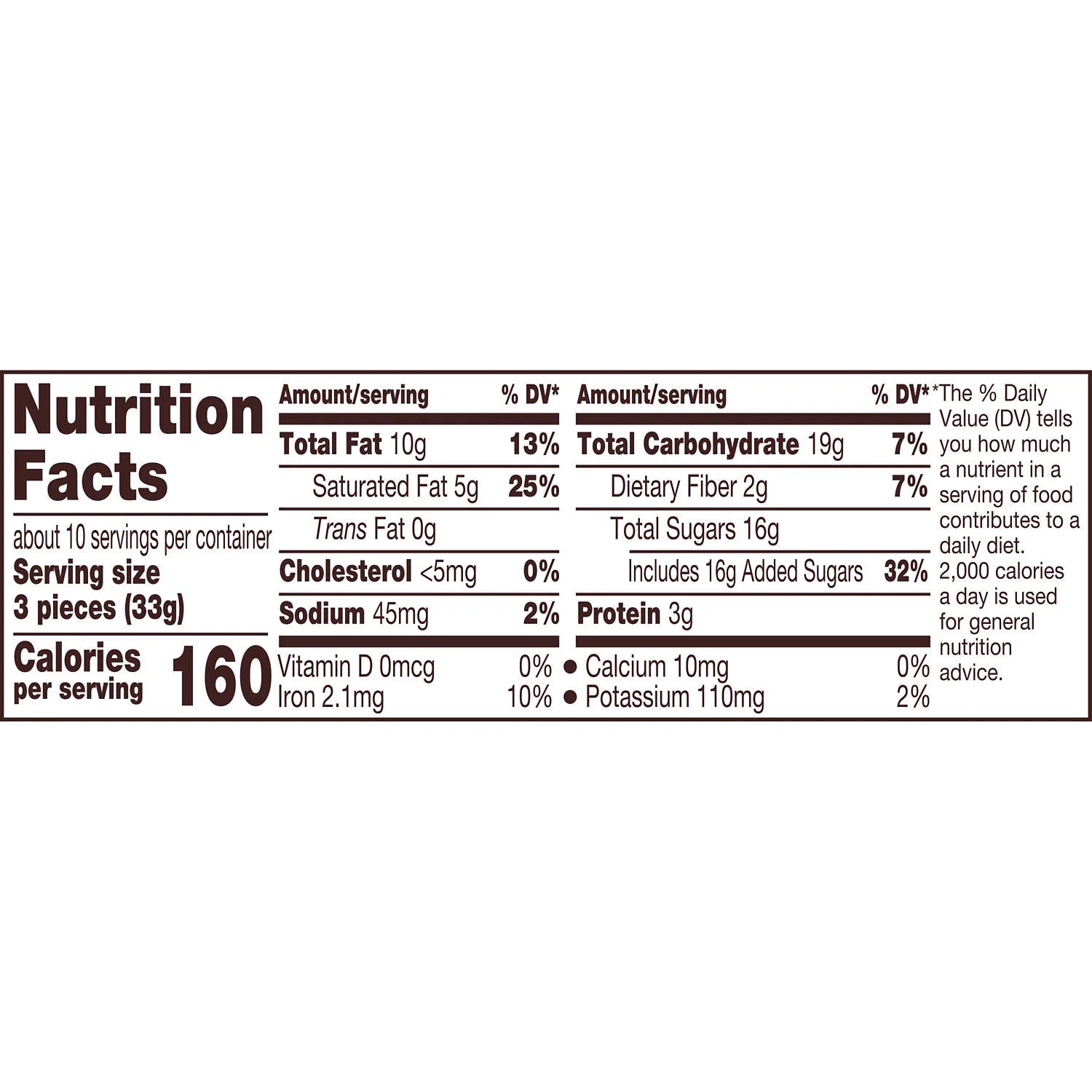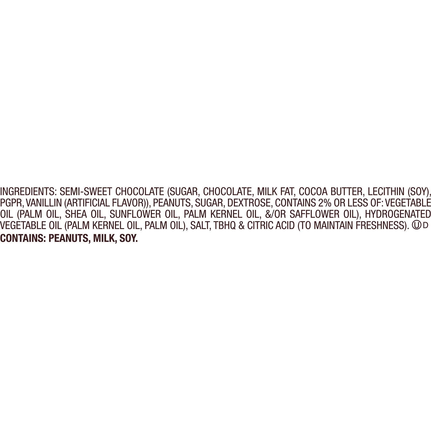 SEMI-SWEET CHOCOLATE (SUGAR, CHOCOLATE, MILK FAT, COCOA BUTTER, LECITHIN (SOY), PGPR, VANILLIN (ARTIFICIAL FLAVOR)), PEANUTS, SUGAR, DEXTROSE, CONTAINS 2% OR LESS OF: VEGETABLE OIL (PALM OIL, SHEA OIL, SUNFLOWER OIL, PALM KERNEL OIL, &/OR SAFFLOWER OIL), HYDROGENATED VEGETABLE OIL (PALM KERNEL OIL, PALM OIL), SALT, TBHQ & CITRIC ACID (TO MAINTAIN FRESHNESS)./div>