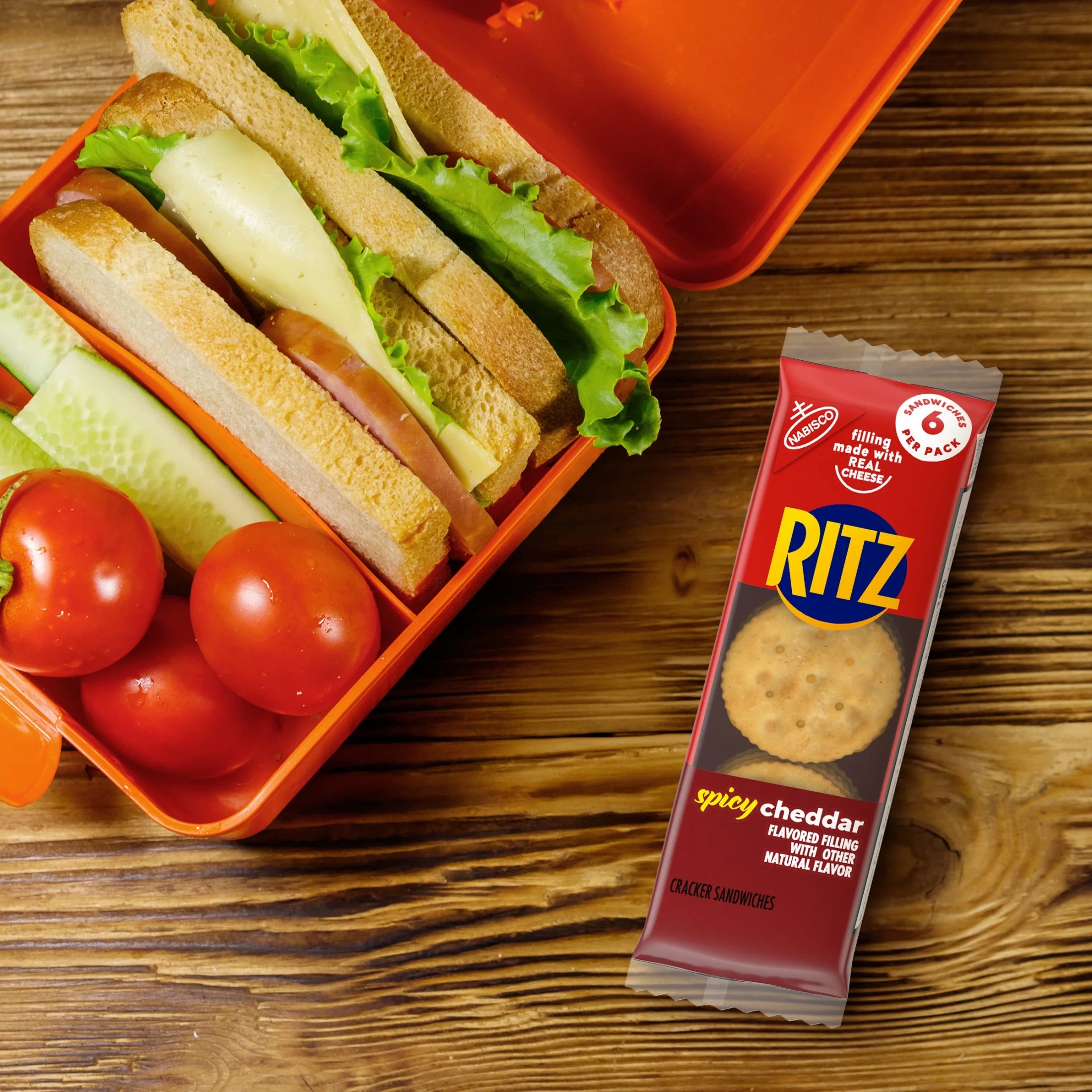 - Bulk crackers pack with individually wrapped snacks packs of RITZ spicy cheese sandwich crackers that are conveniently sized for packing in lunchboxes and backpacks