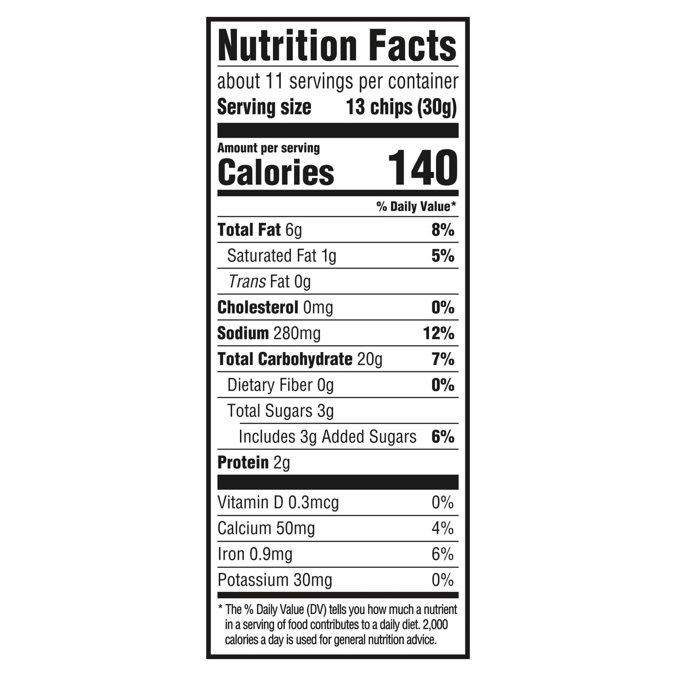 - These toasted crunchy chips have 40 percent less fat per 30g serving than leading fried potato chips