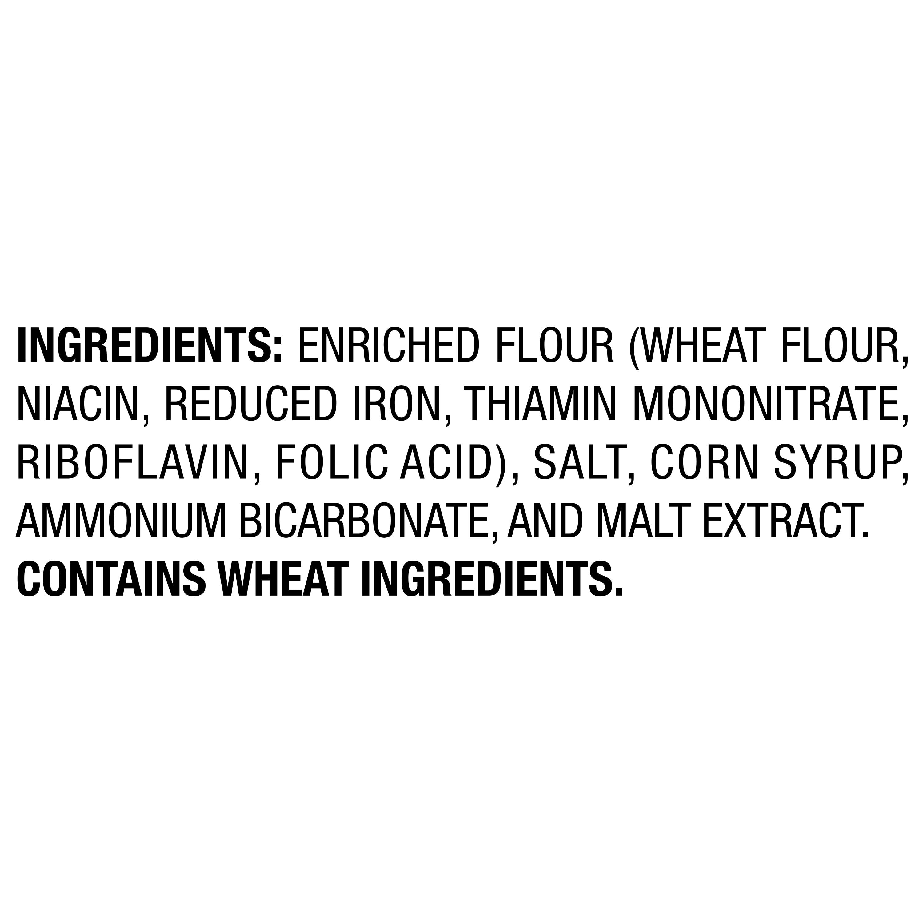 Enriched Flour (Wheat Flour, Niacin, Reduced Iron, Thiamin Mononitrate, Riboflavin, Folic Acid), Salt, Corn Syrup, Ammonium Bicarbonate, and Malt Extract./div>