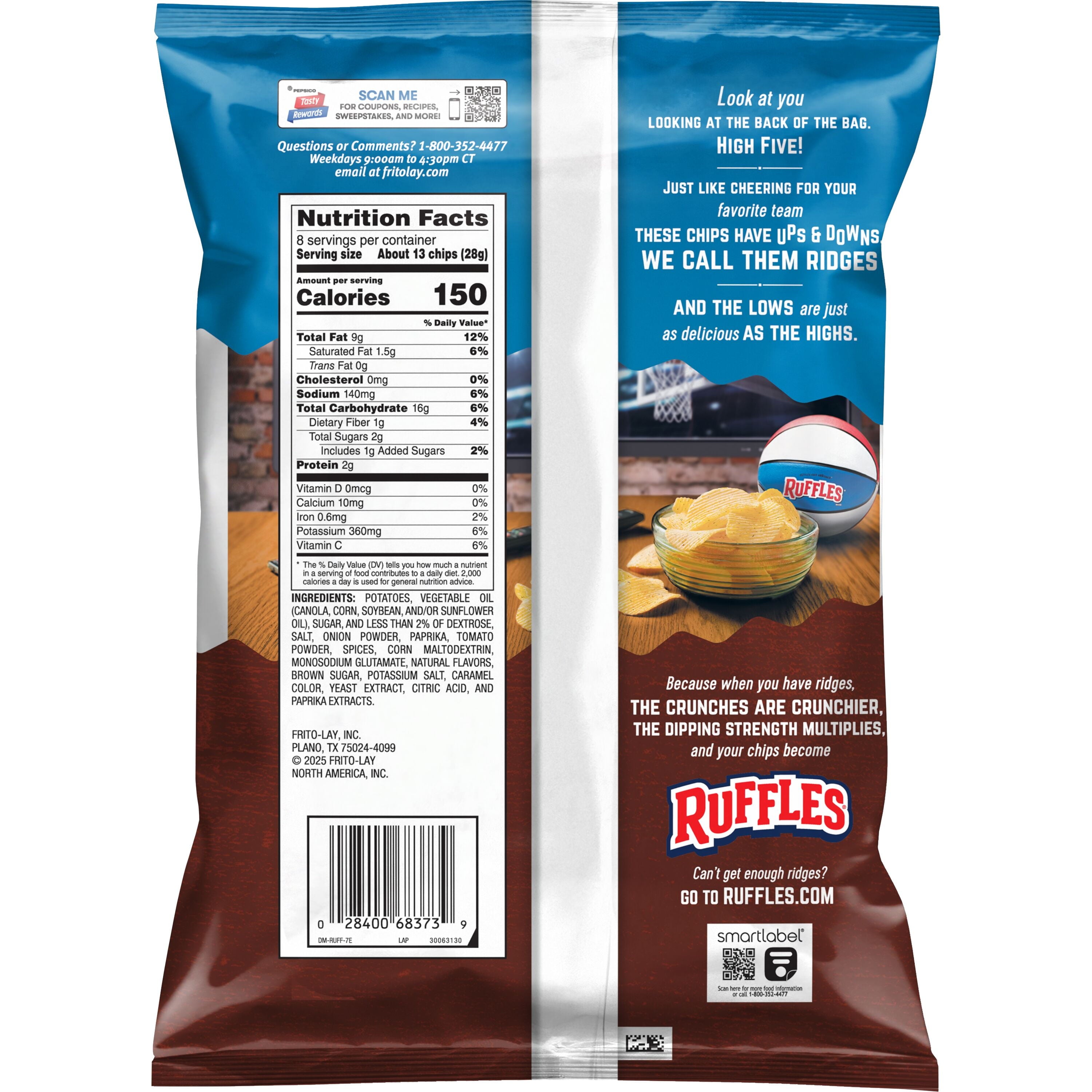 - With crunchy ridges made to stand up to even the thickest dips, RUFFLES potato chips bring epic flavor and snack satisfaction to any get-together