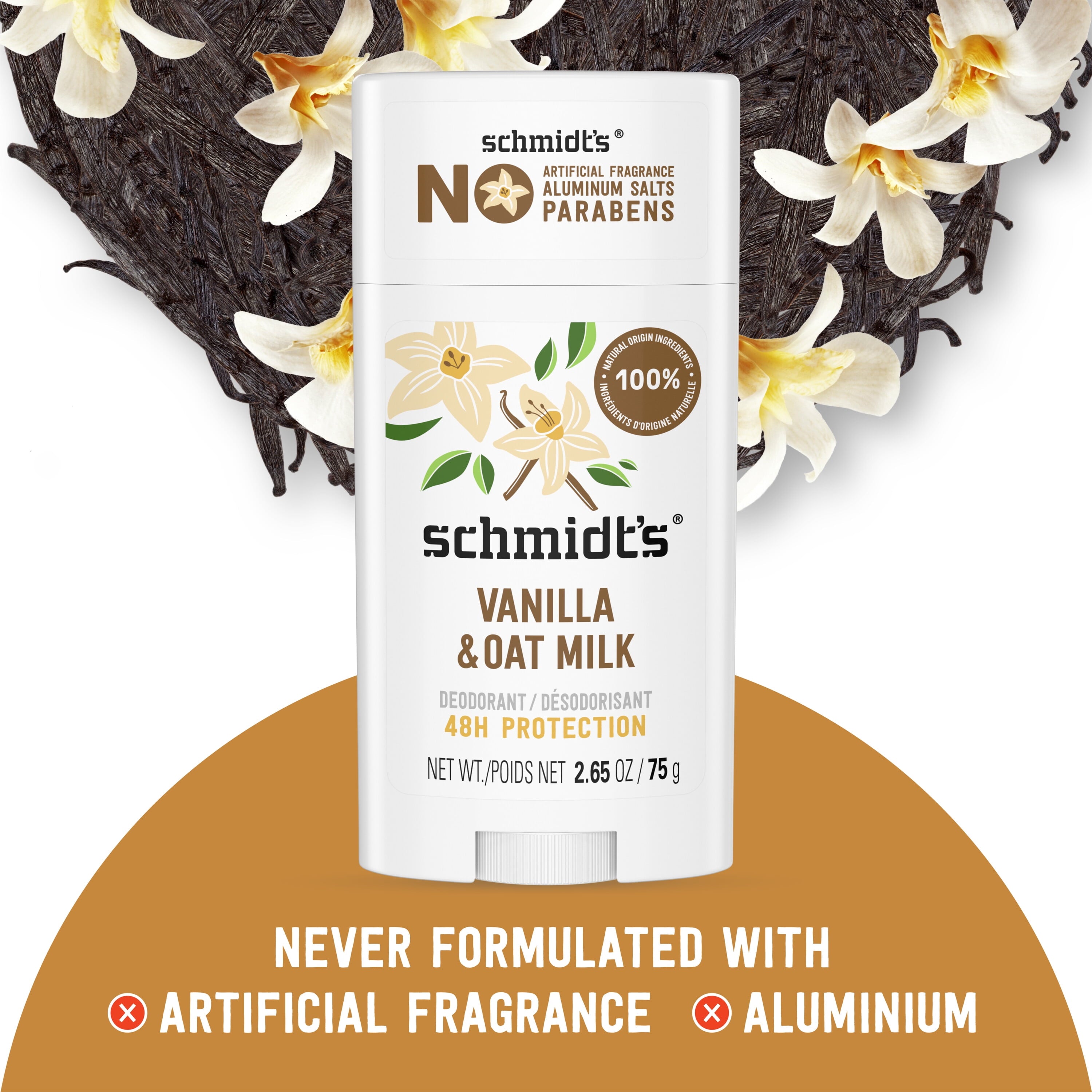 - Schmidt's Women's and Men's Aluminum-Free Vegan Deodorant, Vanilla & Oat Milk, 2.65 oz