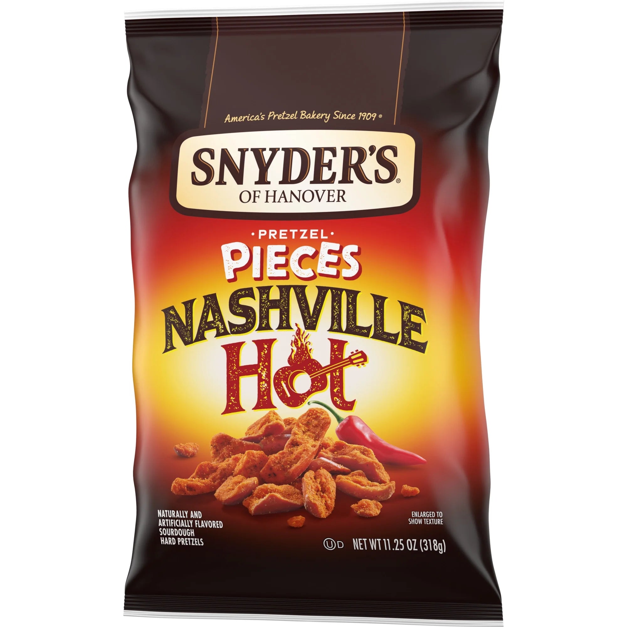 - NASHVILLE HOT PRETZELS: Pretzels bursting with the spicy, savory, and tangy flavor of Nashville Hot sauce and a hint of pickle