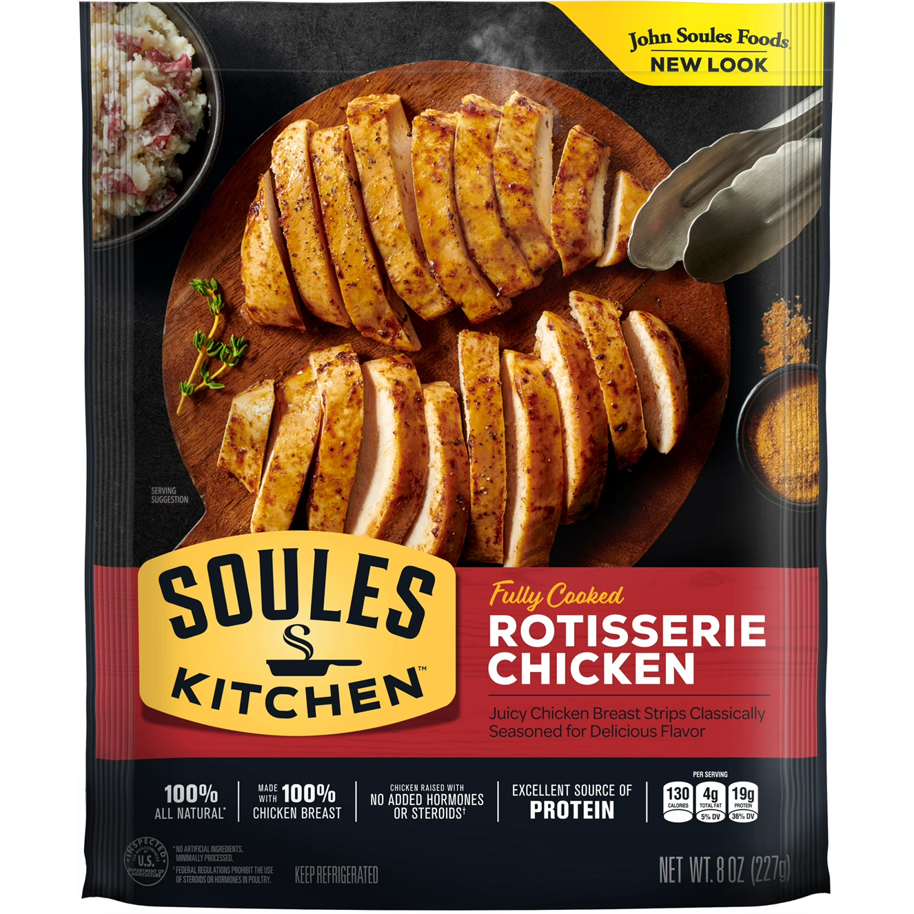 - Soules Kitchen Rotisserie Chicken, 8 oz, Refrigerated, 18g Protein per 3oz Serving