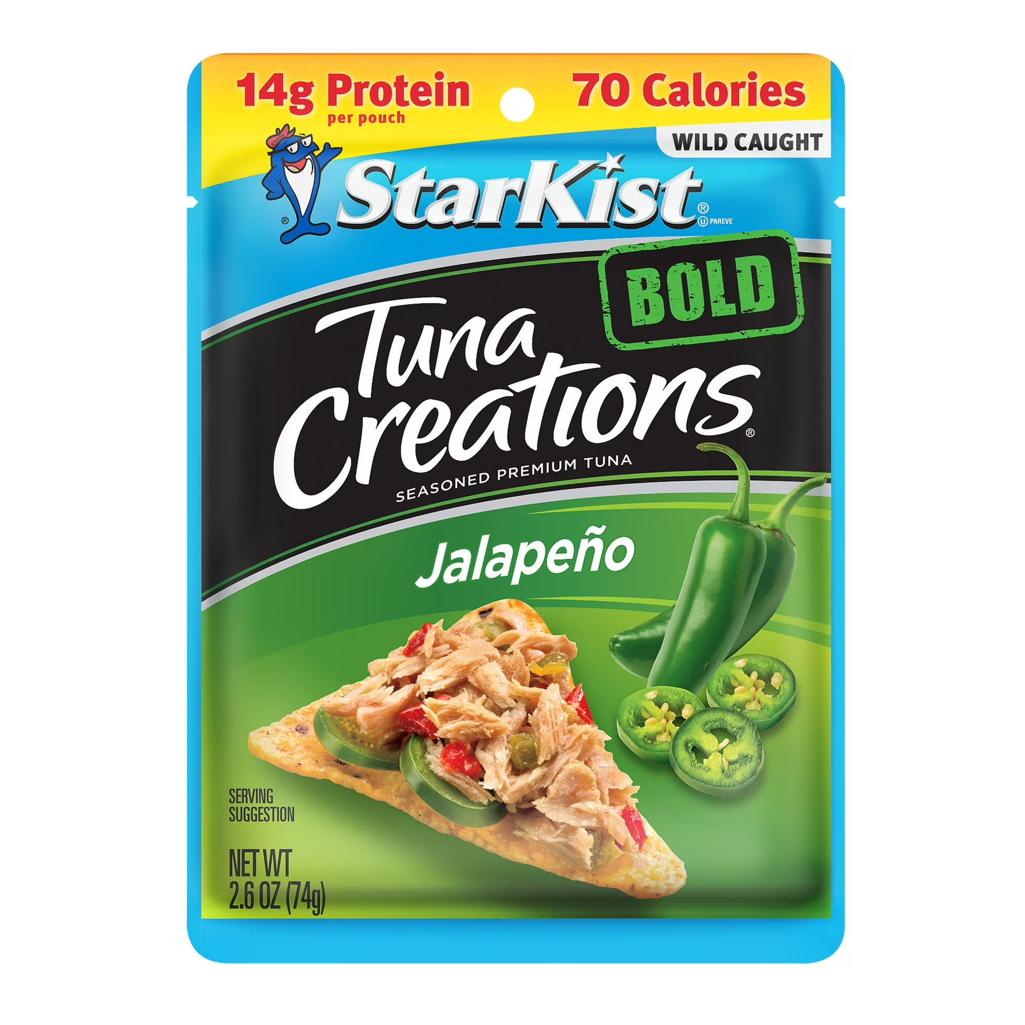 Are you ready for a fiesta of flavor? We kick things off with our premium wild caught tuna and let it mingle with bell peppers and a burst of picante jalapeño peppers. With 70 calories and 14g of protein, this nutrient dense tuna pouch is the perfect fit for today’s active lifestyle. It also works well with Mediterranean, Weight Watchers and Keto diet plans. Whether you’re enjoying the bold flavors in a wrap, on a plate of tortilla chips or straight from the pouch, you can just tear, eat and go! 100% Shelf Stable.