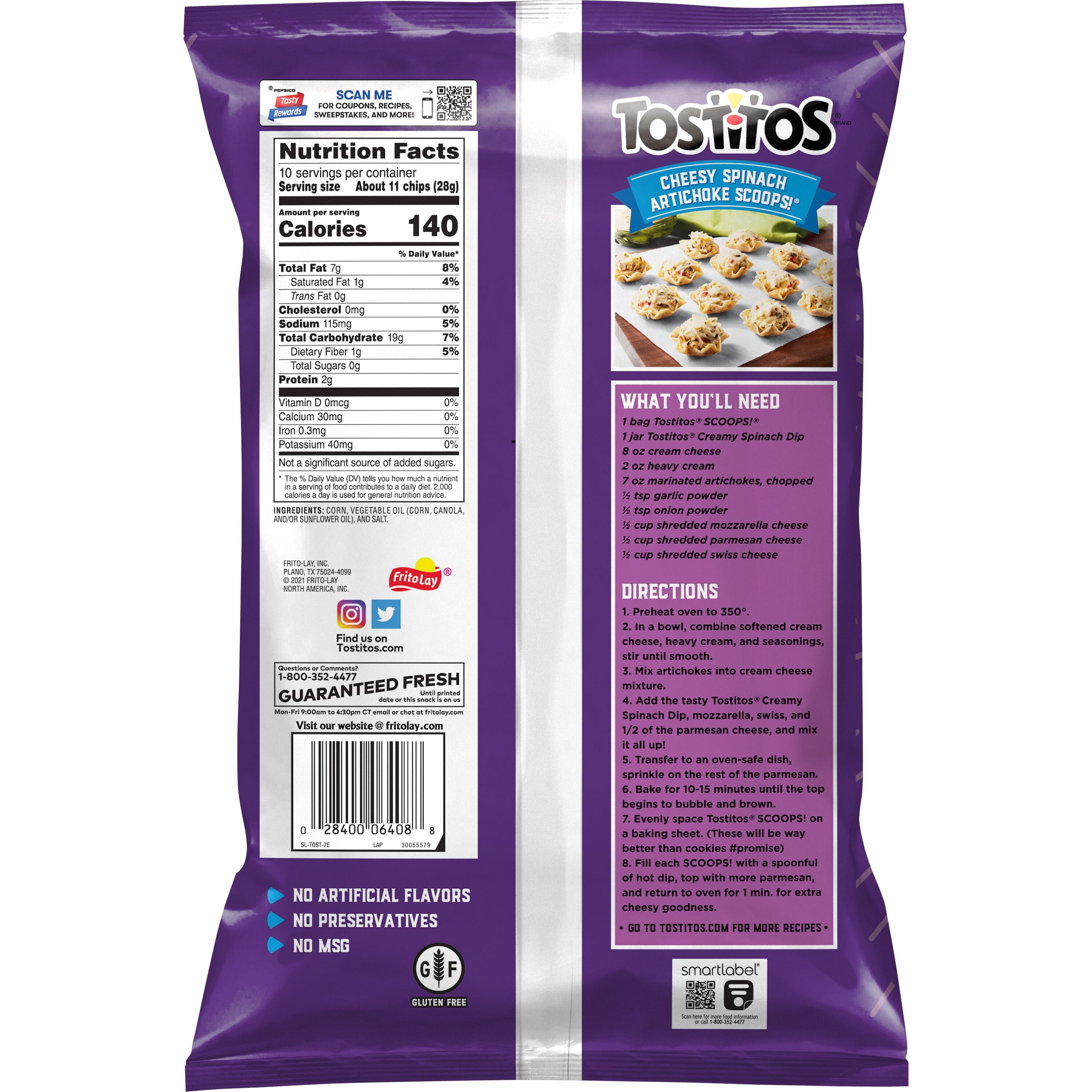 - Includes 1 (10 oz) plastic bag of Tostitos Scoops Tortilla Chips Original