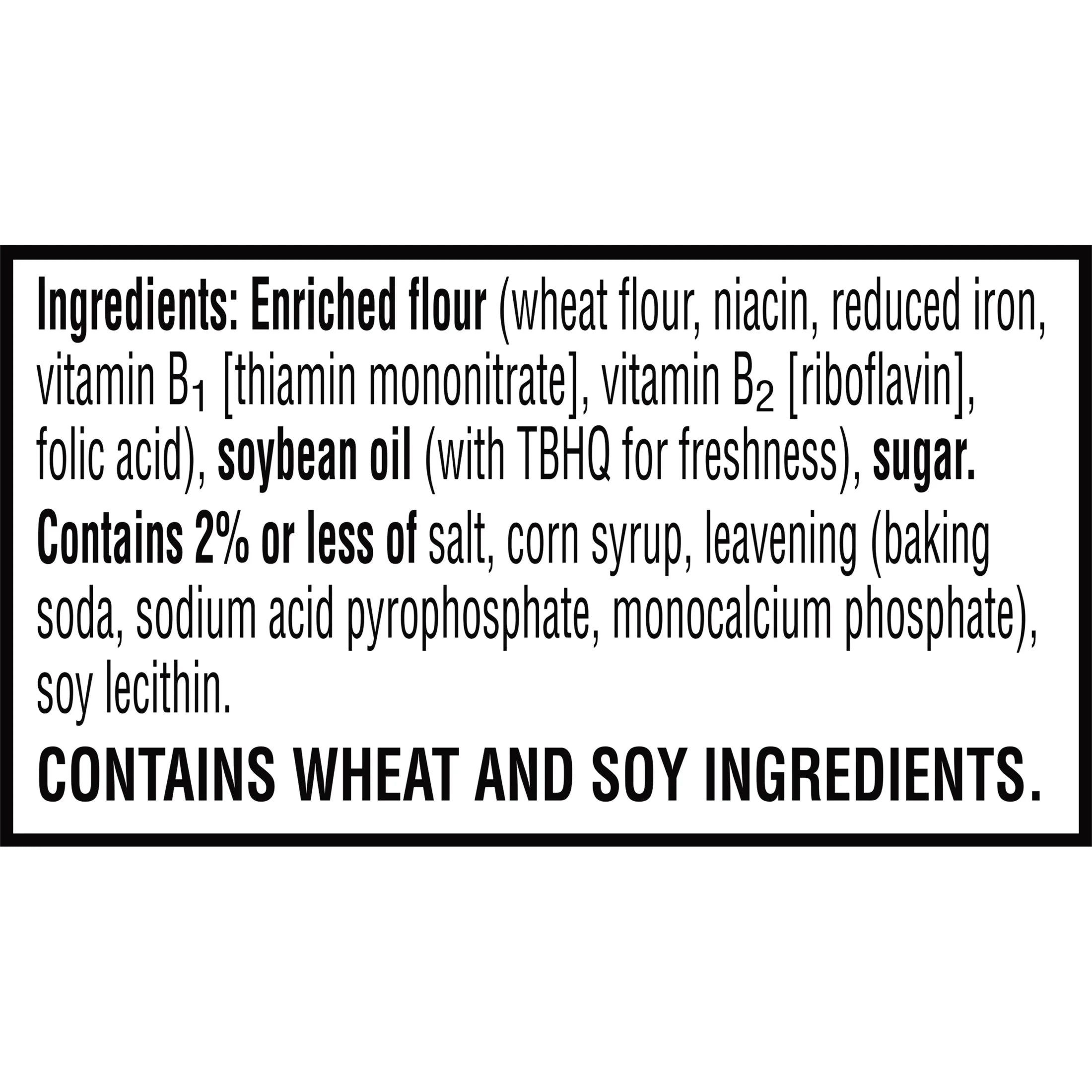 Enriched flour (wheat flour, niacin, reduced iron, vitamin B1 [thiamin mononitrate], vitamin B2 [riboflavin], folic acid), soybean oil (with TBHQ for freshness), sugar. Contains 2% or less of salt, corn syrup, leavening (baking soda, sodium acid pyrophosphate, monocalcium phosphate), soy lecithin./div>