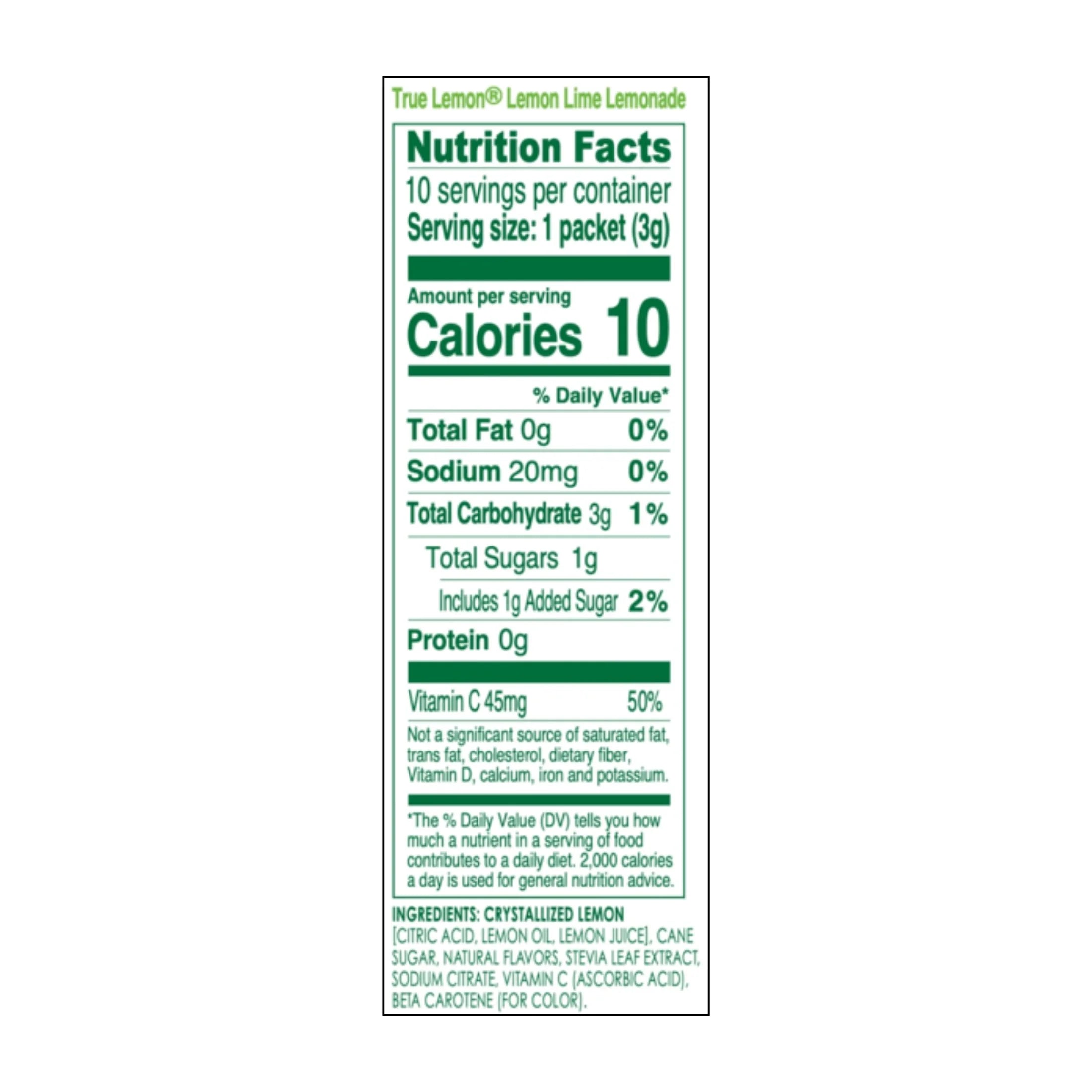 - True Lemon Lemon Lime Lemonade, 1.06 oz., 10 drink mix stick packets